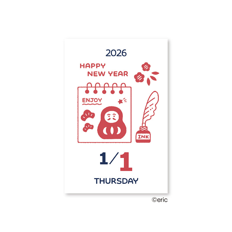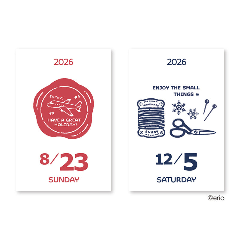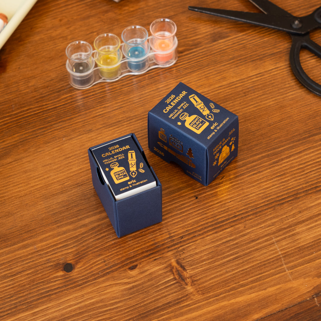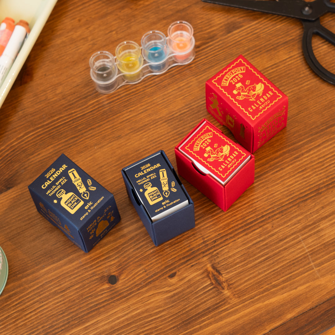 A pocket-sized page-a-day calendar showcasing eric’s signature stamp-style illustrations. Each day unveils a new, finely detailed character or scene, offering a moment of quiet joy throughout the year. Perfect for those who love small treasures, the sheets can be kept and repurposed for journaling, collages, or decorative notes after use.