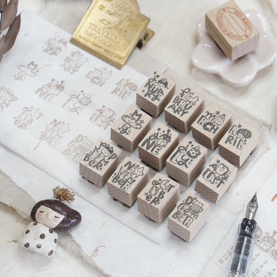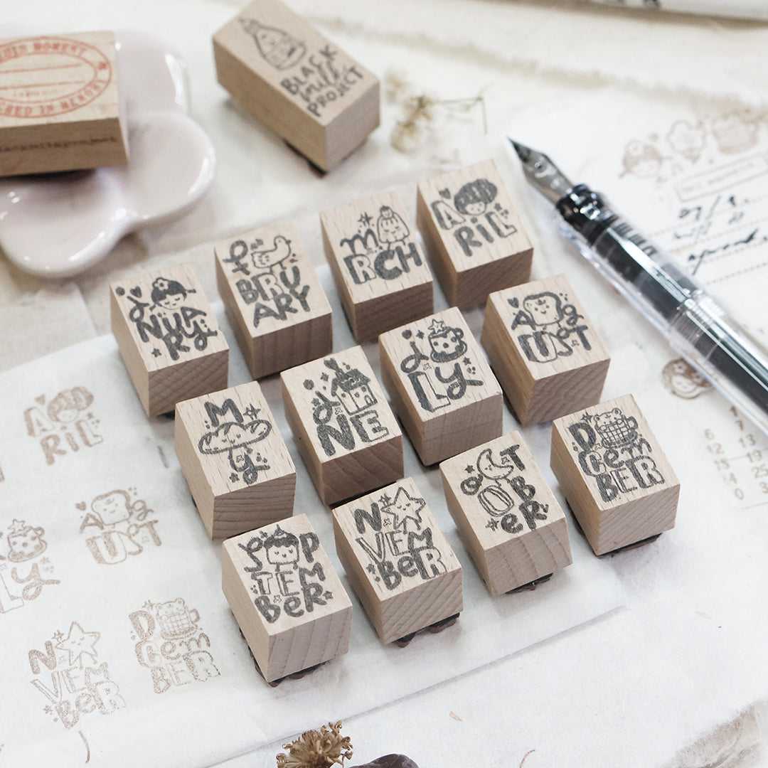 *All photos are by Black Milk Project; copyright belongs to Black Milk ProjectThis is for a set of 12 rubber stamps, one for every month in a year with a playful illustration in Black Milk Project style. Each stamp measures 1.5cm x 2cm.