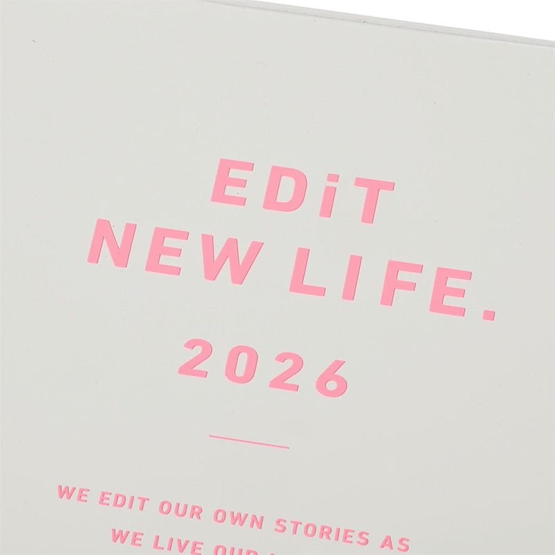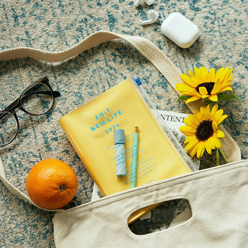 EDiT’s beloved B6 Daily (1-page-per-day) returns with the new Typo Pocket cover—a clear, slide-zip pocket that keeps pens, sticky notes, tickets, and small essentials together with your planner. Printed on NEO AGENDA for EDiT paper (forest-certified) with a thread-stitched binding, this January-start, Monday-start format pairs monthly block pages with a true 1-day-per-page daily. The roomy B6 page gives you space to write freely—perfect for diaries, life-logging, ideas, and detailed daily planning.