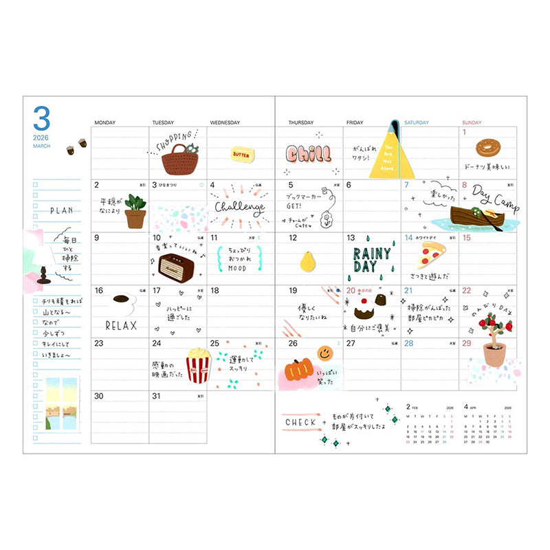 The Storage.it 2026 Monthly Block Planner (A5, December start) is a long-time favorite, known for its clear PVC zip cover that can hold tickets, notes, photos, or small stationery items. Marking its 20th anniversary, this edition continues to evolve beyond simple scheduling into a tool for carrying your inspirations and personal style. The 2026 lineup introduces new Brown and Pink colorways alongside its classic simplicity, offering a versatile look that suits every setting.
