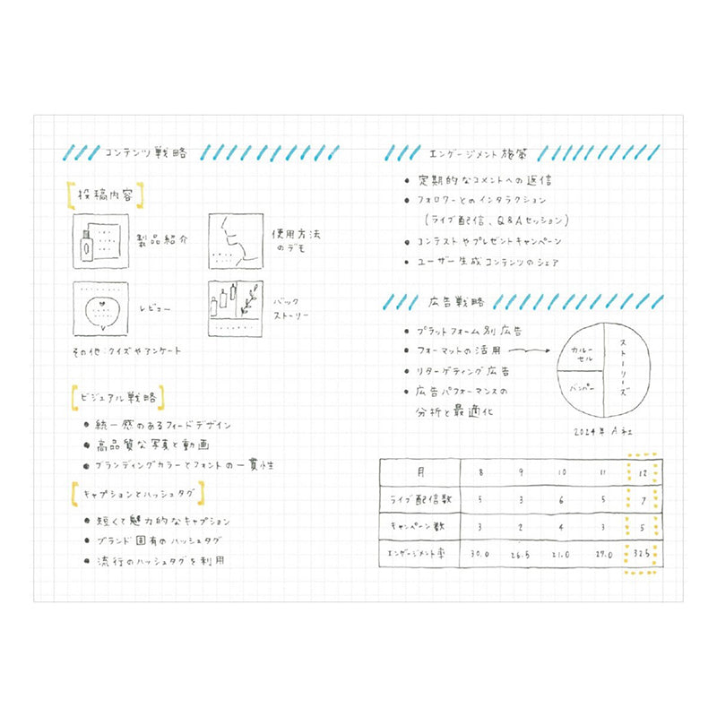 5 mm grey grid throughout (easy to read; ideal for writing or drawing in either orientation)