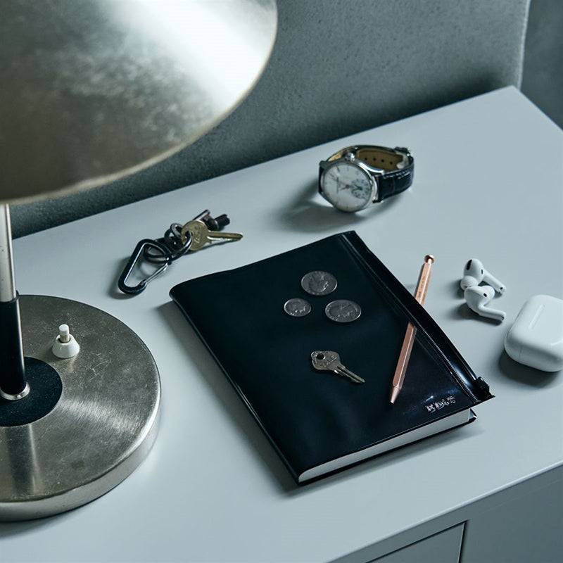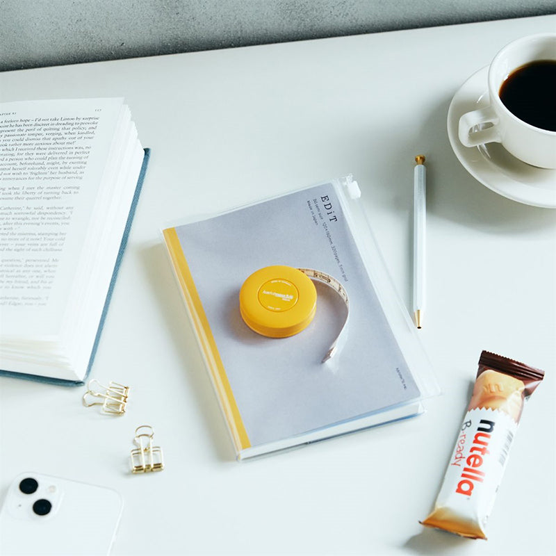 A B6 grid notebook with a slim, slide-zip PVC pocket cover—designed to carry your small essentials alongside a notebook that’s thin, light, and satisfying to write on. Made with EDiT’s original NEO AGENDA for EDiT paper, it balances everyday practicality with a clean, modern look. The 5 mm grey grid works beautifully in both portrait and landscape, making space for notes, sketches, lists, and light journaling. Available in a simple lineup of five versatile colours.