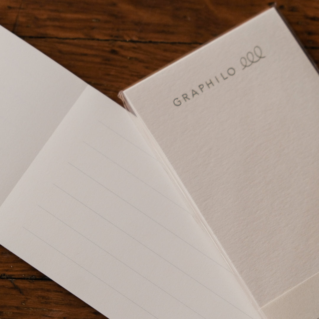 Made with Kobeha Keikaku’s original GRAPHILO paper, this one-line letter pad is designed for people who genuinely enjoy writing. Developed in collaboration with paper makers and fountain pen enthusiasts, GRAPHILO offers a smooth, expressive surface with rich ink flow, crisp line definition, and beautiful colour and shading. Ink dries a little more slowly than on standard paper, allowing the character of fountain pen inks to fully emerge.