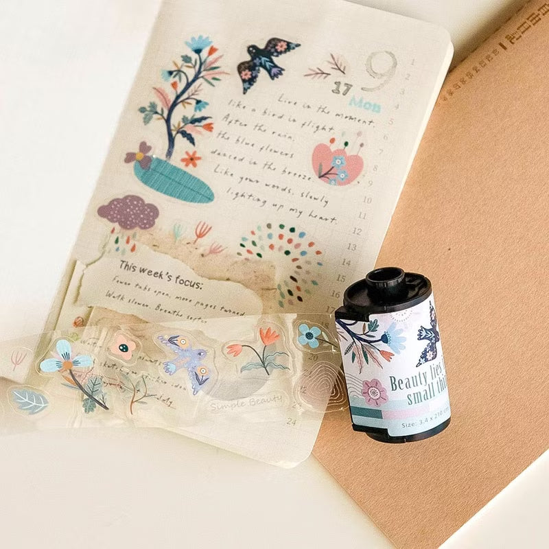 MU Print PET Kiss Cut Roll Tape - 06 Feathers Whispering Among Flowers
