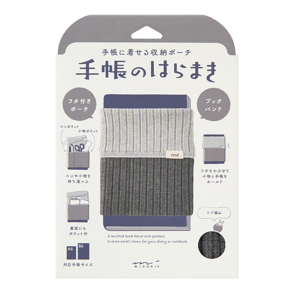 Midori Haramaki Knitted Book Band with pockets A6-B6 Two-Tone Gray