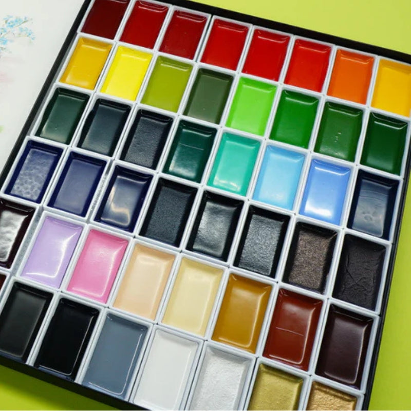 Introducing the Kuretake Watercolour Gansai Tambi Set (48 colours) MC20/48V, an exquisite collection of traditional Japanese watercolors. This set features 48 vibrant, richly pigmented colors that offer smooth application and excellent blendability, perfect for artists of all levels. Each color pan is generously sized and housed in a sleek, sturdy case, ensuring easy access and organization. The high-quality pigments deliver brilliant, long-lasting results on various surfaces, making this set ideal for detailed illustrations, calligraphy, and broad washes. Elevate your creative projects with the renowned quality and versatility of Kuretake Gansai Tambi watercolors.