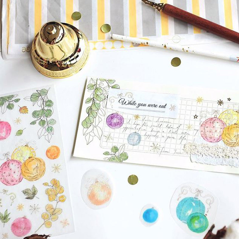 These stickers have a lovely translucency and layering them creates beautiful effects. They differ from stickers in that they appear printed on your item vs. applied. They can be applied on paper, glass, etc. Each pack comes with 2 sheets of different designs.