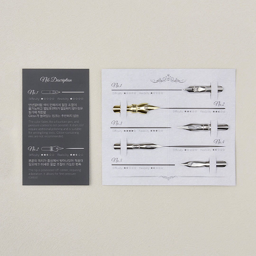Whether you enjoy expressive lettering, fine details, or exploring the texture of different inks, this thoughtfully curated set invites experimentation. Designed to pair perfectly with standard dip pen holders such as Wearingeul's own holder, it’s an inspiring addition to any writing desk — and a stunning gift for those who love the slow craft of writing.