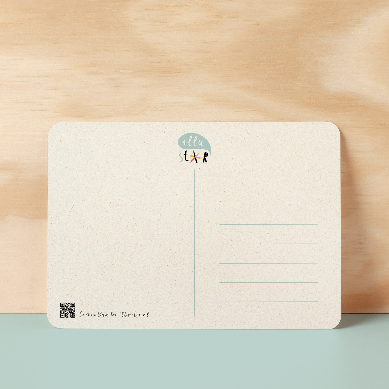 This illustrated Postcard is printed on Paper Wise paper, an innovative paper made entirely from 100% agricultural waste. By utilizing crop residues, it not only contributes to environmental sustainability but also creates a unique and responsible product. The paper's natural color enhances the organic appeal, creating a canvas that perfectly complements the green ethos of your message. The smooth texture of the paper, together with visible fibers, provides a tactile experience that connects the recipient with the authenticity of the raw materials used. The rounded corners add a touch of vintage, turning this postcard into a delightful keepsake. With each purchase, you're not just sending a message – you're supporting a sustainable future.