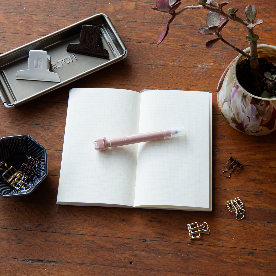 The Kutsuwa Rolling Stamp Pen adds a playful touch to journaling and planning. This clever two-in-one tool combines a smooth 0.5mm gel pen with a self-inking rolling stamp, letting you write and decorate in one motion. The roller leaves a continuous pattern—like stars, arrows, or tiny shapes—perfect for marking dates, highlighting notes, or adding small details to your pages. Compact and easy to carry, it’s available in a range of subtle colour themes from Japan, making it both fun and practical for everyday use.