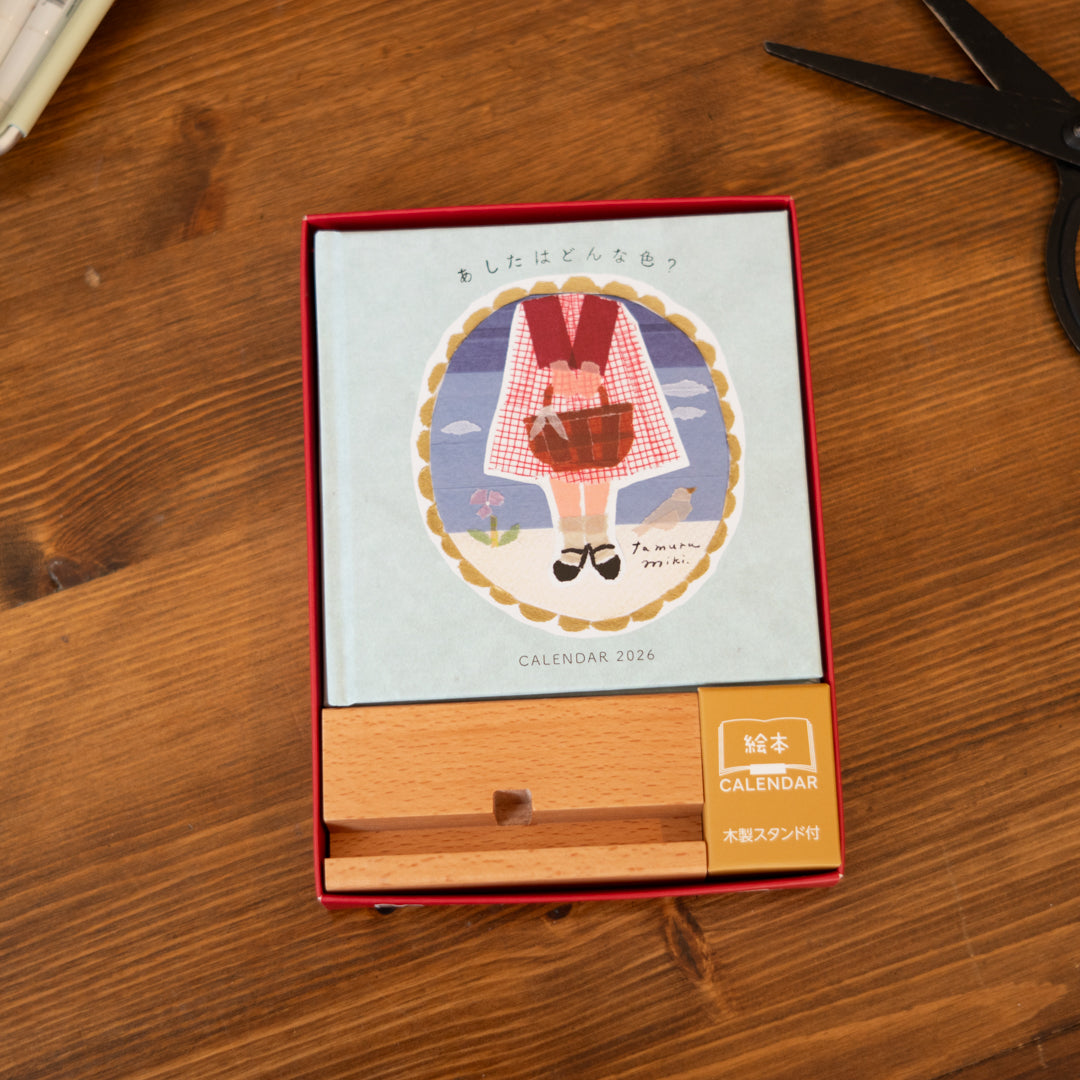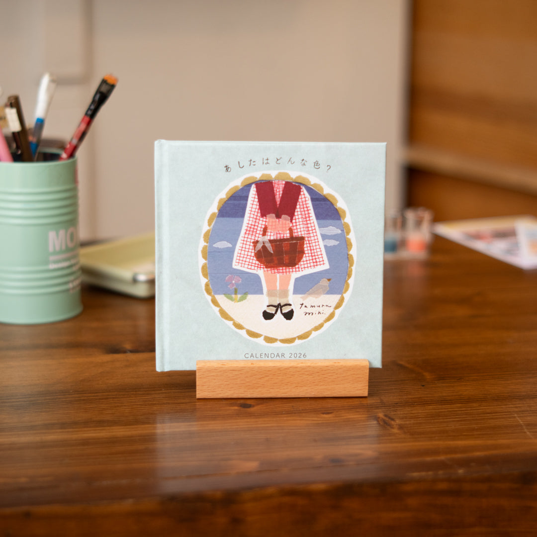 A tabletop calendar that feels like a storybook in motion. Each page follows a young girl as she wanders out into the world, with her experiences expressed through Miki Tamura’s distinctive masking tape art. The result is a warm, narrative calendar that invites you to turn the page with curiosity each month. It comes with a wooden stand that adds a natural touch to your desk or shelf.