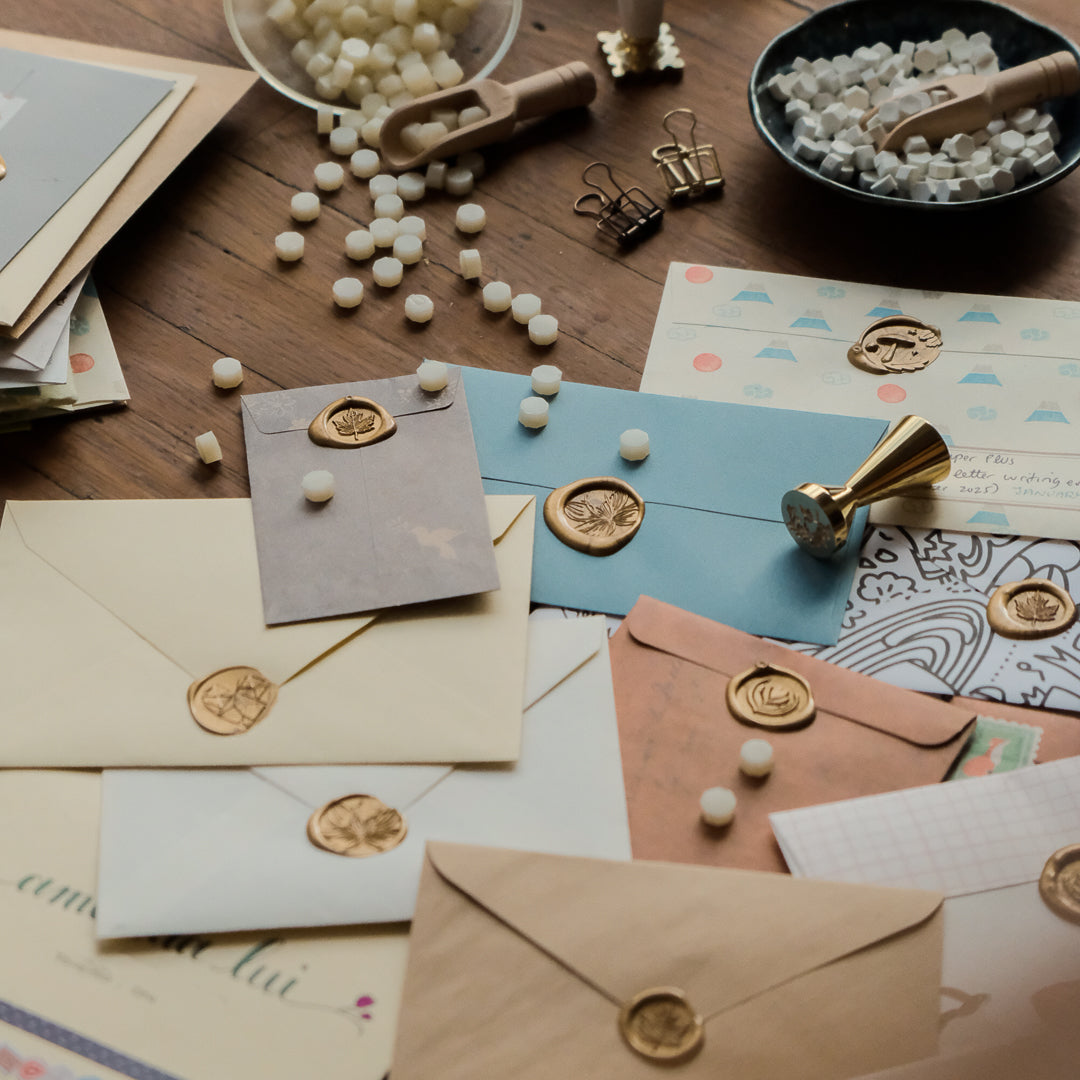 Stationery, cards, envelopes and papers suitable for letter writing and snail mail. Letter writing paper and embellishments will also be available.