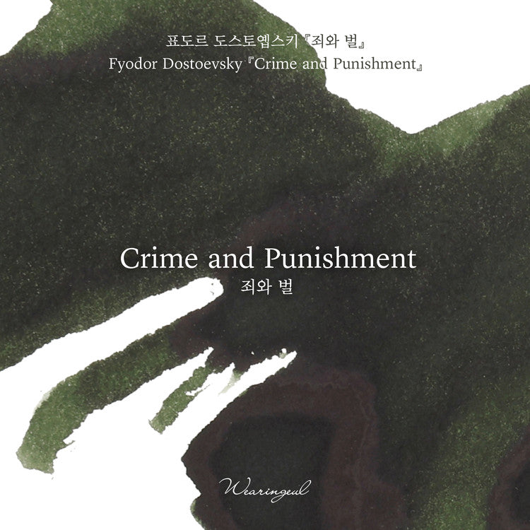 A dark, muted green ink with a deep reddish-brown edge, reflecting Raskolnikov's crime committed under his own justification and the guilt that follows.