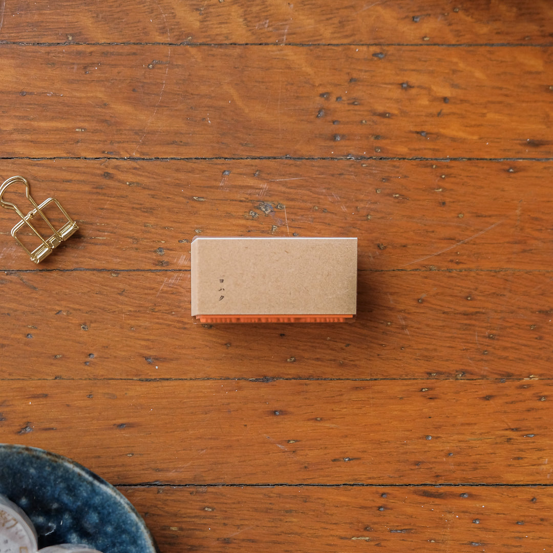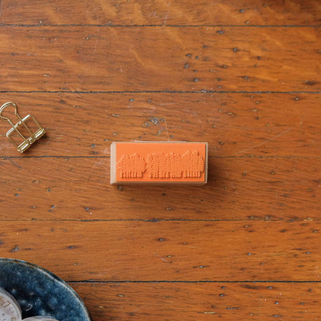 This rubber stamp features a quiet line of trees rendered in Yohaku’s signature understated style. The fine, delicate detailing creates a soft impression on the page—evoking a forest at night, seen from a distance, calm and still.