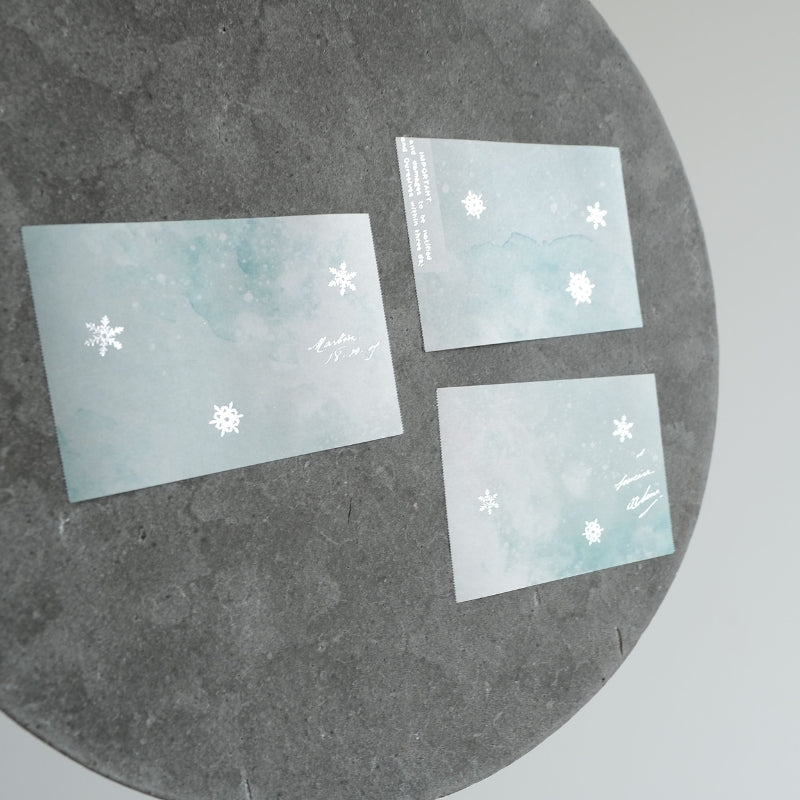 This foil-stamped roll memo features a soft, wintry palette accented with delicate silver snowflakes that shimmer gently as they catch the light. Printed on paper and finished with foil stamping, each design feels light and refined—quietly charming without being overly decorative. The snowflake motif (Yukinohana, “snow flowers”) feels especially at home in winter, yet its clean, airy beauty makes it easy to use year-round for notes, journaling, or small messages.
