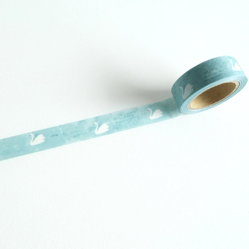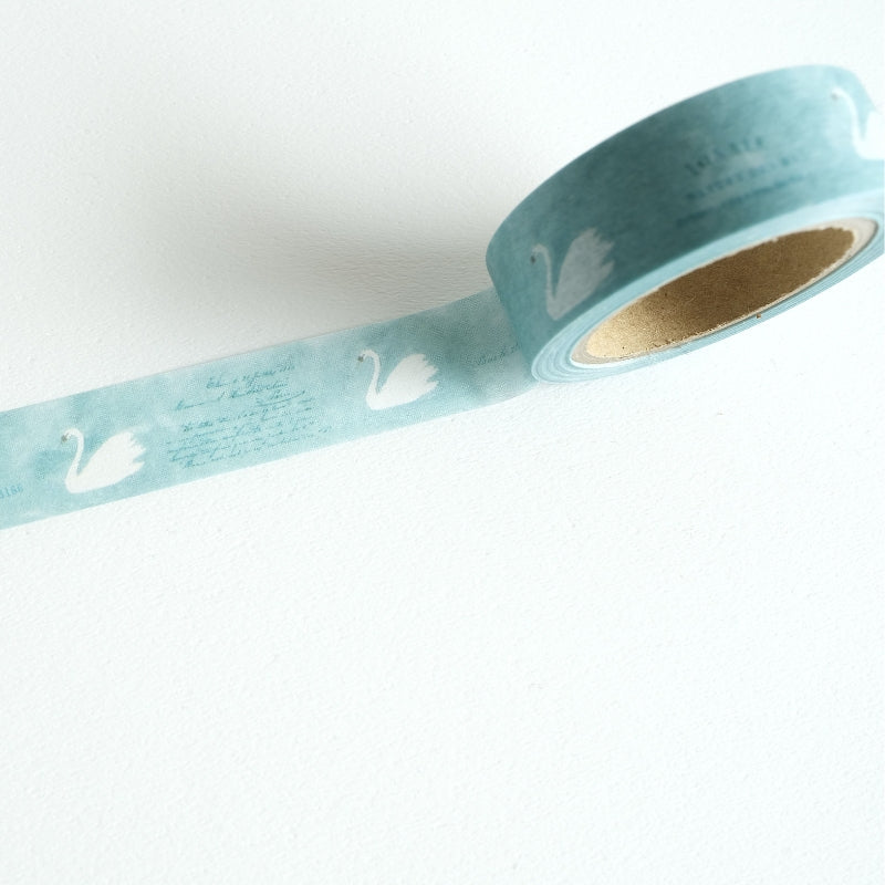 This washi tape is inspired by the swans the artist looks forward to seeing each year in Naganuma, often spotted gliding together along the canal. Watching them swim one after another—peaceful and in rhythm—felt much like a musical canon, which gave the design its name. The result is a charming, gentle pattern of swans moving in quiet harmony, created to be both comforting and playful, and designed to pair beautifully with the limited edition release as well as everyday journaling and collage.